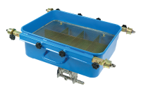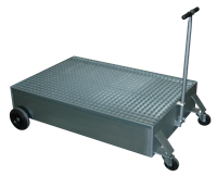 Zum Auffangen von Altöl (bekannter Herkunft, Flammpunkt > 55° C) in Gruben. Entleerung mittels Ablasshahn oder pneumatischer bzw. elektrischer Pumpe. Die 4 Laufrollen sind auf das Grubenprofile einstellbar.