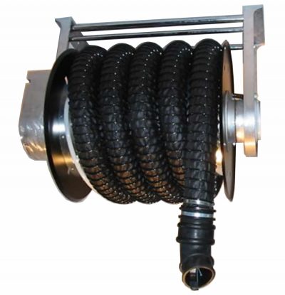 Verwendet wird der speziell für die höheren Abgastemperaturen der heutigen Fahrzeuggenerationen entwickelte Spiralschlauch. Er ist temperaturbeständig bis ca. 180°C. Selbstverständlich kann die Anlage auch mit einem Schlauch für höhere Temperaturbelastungen ausgerüstet werden. Die Besonderheit dieser Schlauchaufroller ist der Aufbau aus Aluminiumguss-Bauteilen wie z.B. den Seitenwangen sowie dem Deckel und Drehteilen.