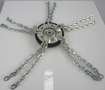 • Schonender Betrieb: Dank vorgespannter Federn werden die Ketten gleichmässig unter die Reifen gelegt. Das sorgt für einen ruckfreien Betrieb und schont die Reifen sowie das System.