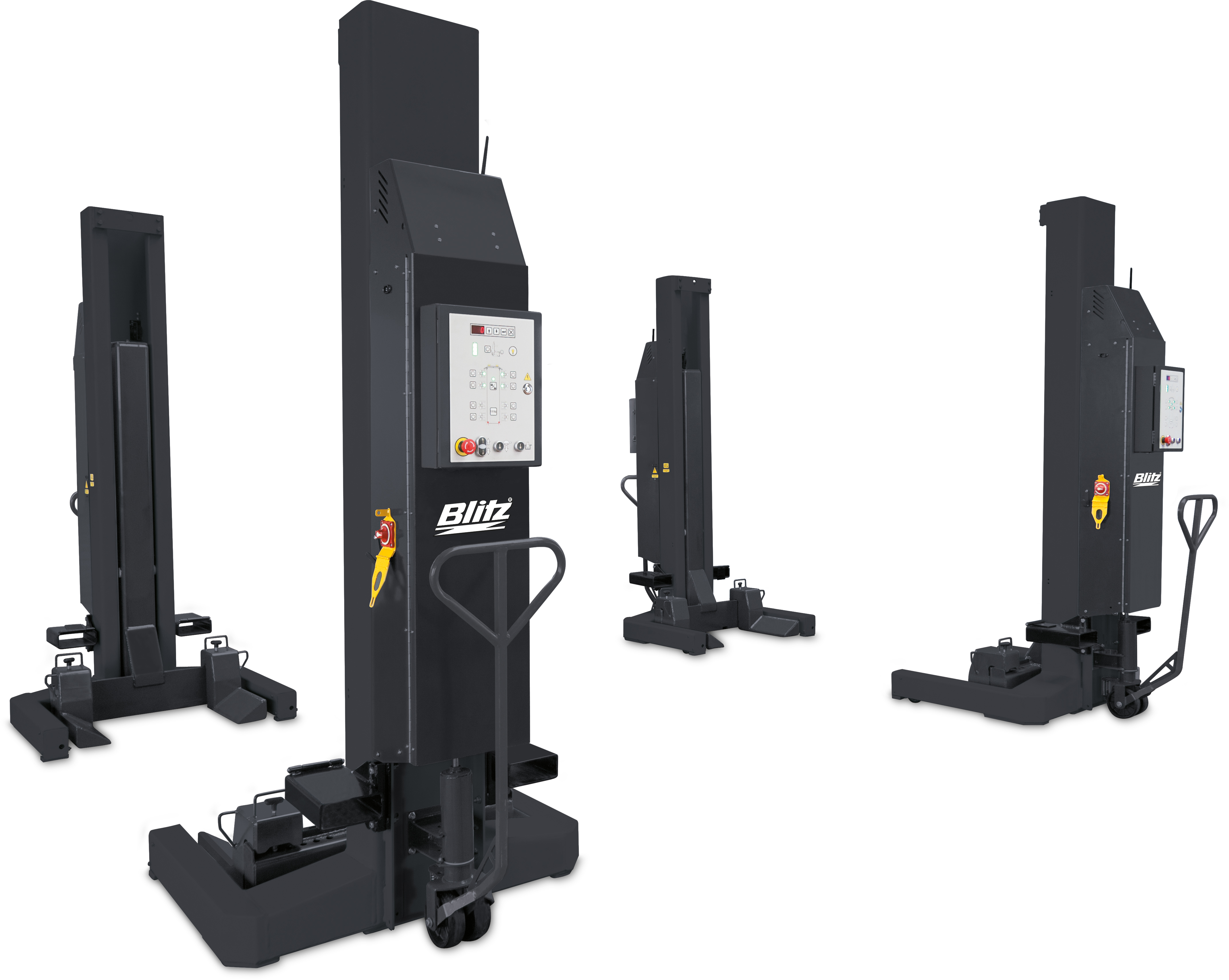 • 4-Säulen-Hebebühnen – Perfekt für Achsvermessung, schwerere Fahrzeuge und längere Radstände.